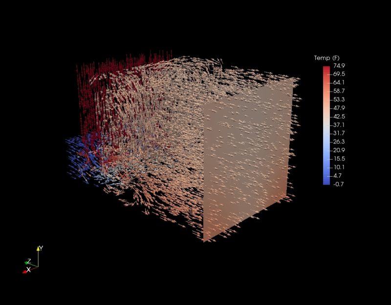 Cross-section image of KEES CFD analysis shows impact of air mixer inserted in an air handling unit.